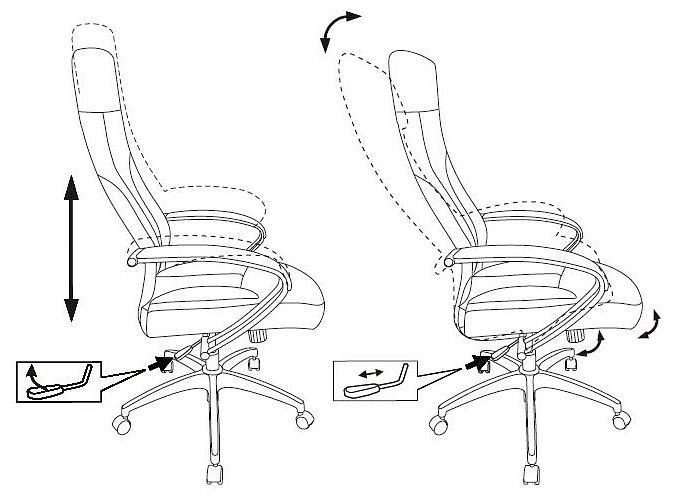 Механизм качания с регулировкой под вес и фиксацией в вертикальном положении. Регулировка высоты (газлифт). Пластиковая крестовина. Подлокотники металлические крашеные в черный цвет с тканевыми накладками.