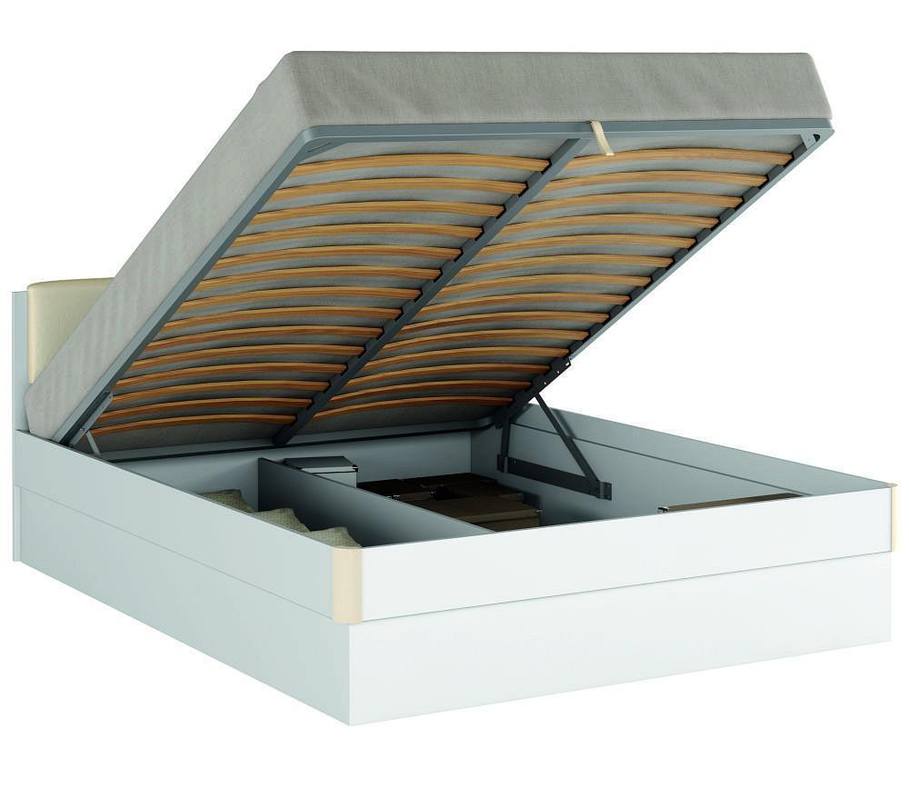 Удобный механизм поднимает ортопедическое основание с матрасом под углом более 45 градусов, и предоставляет полный доступ ко всему внутреннему пространству кровати, в котором можно разместить постельные принадлежности. На изголовье - накладка из износостойкой итальянской винилискожи на изголовье.