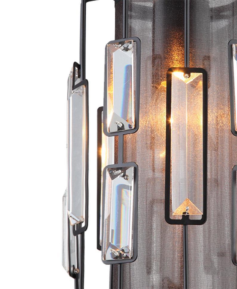 АГЛАЯ. Основа моделей «АГЛАЯ» - металлические прутья черного цвета. Плафону придана форма круглой клетки для птиц и декорирована треугольными, хрустальными призмами. Внутренняя часть плафона затянута воздушной, полупрозрачной тканью. Это придает люстре оригинальный вид, выгодно отличающий ее от других.