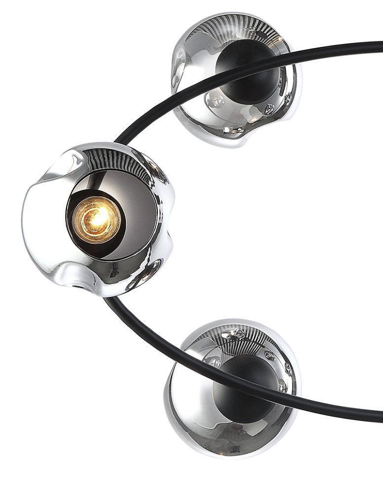 Космическим вращением экстравагантных планет вселенной вашего дома выглядит строгое металлическое кольцо, на котором основательно закрепились стеклянные, тонированные плафоны. «ФРЕРИ» - идеальный выбор ценителей LOFT.
