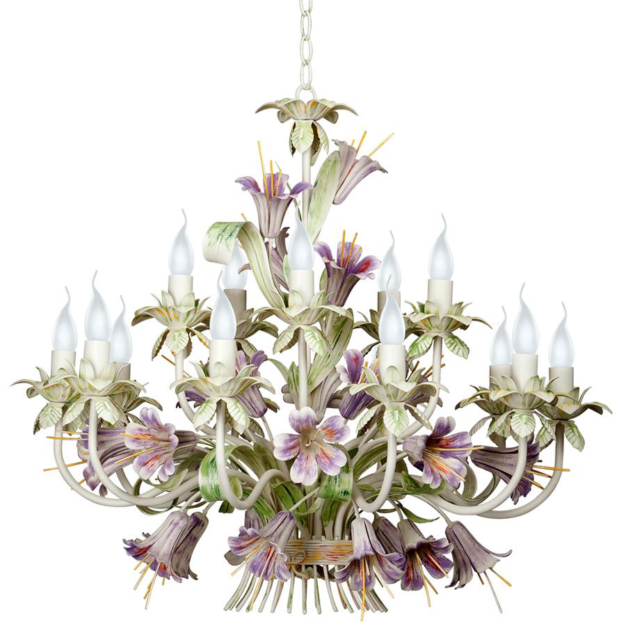 Данная модель входит в состав коллекции V1116 и исполнена в стиле флористика. Люстра имеет высоту 1470 мм и диаметр 800 мм. Работает при напряжении 220-240 V.