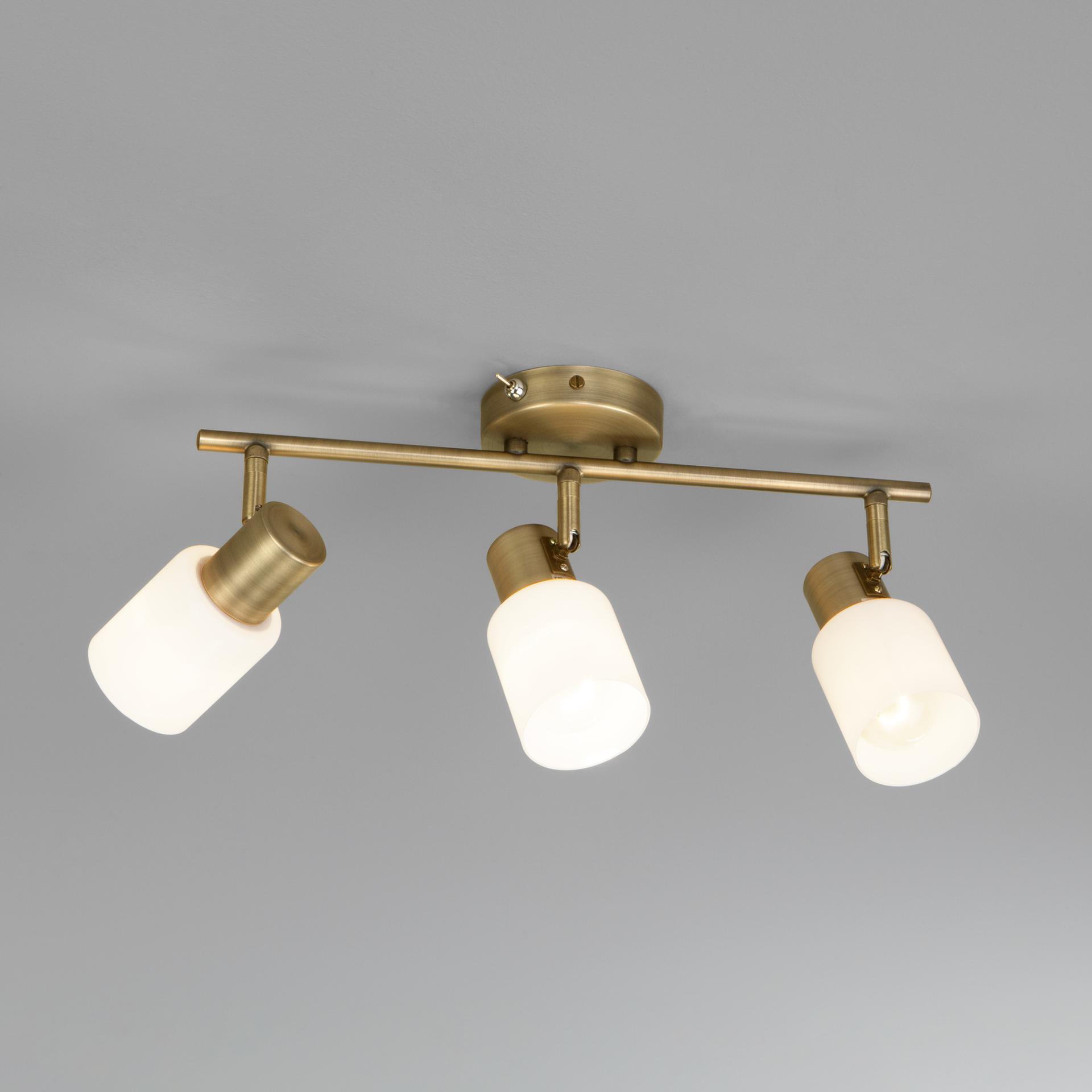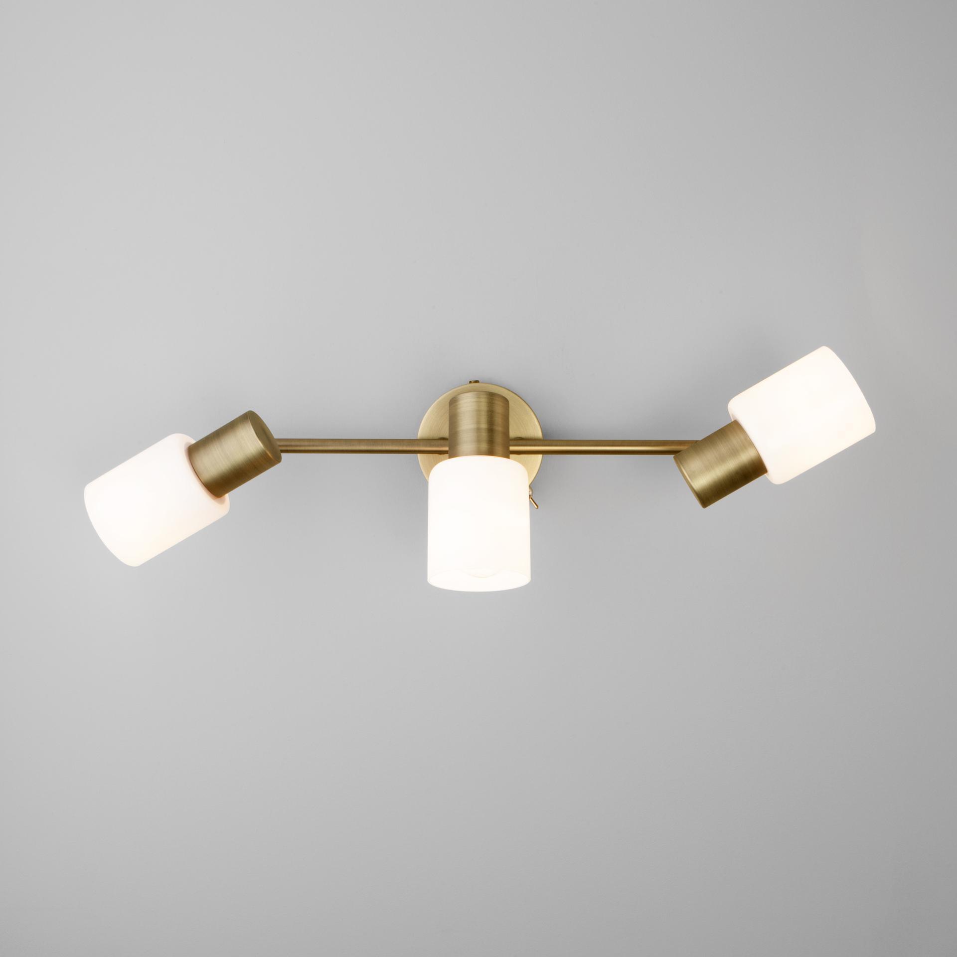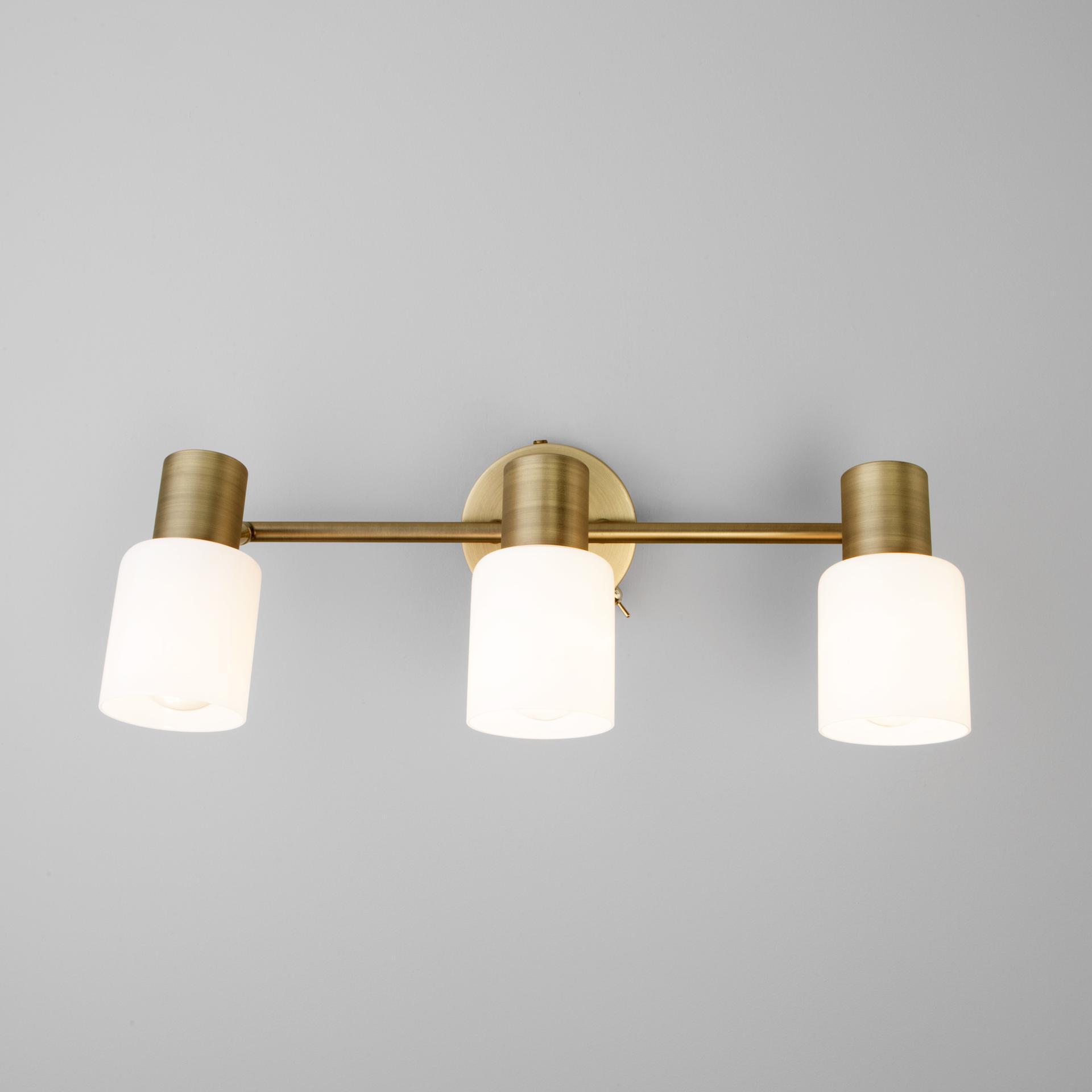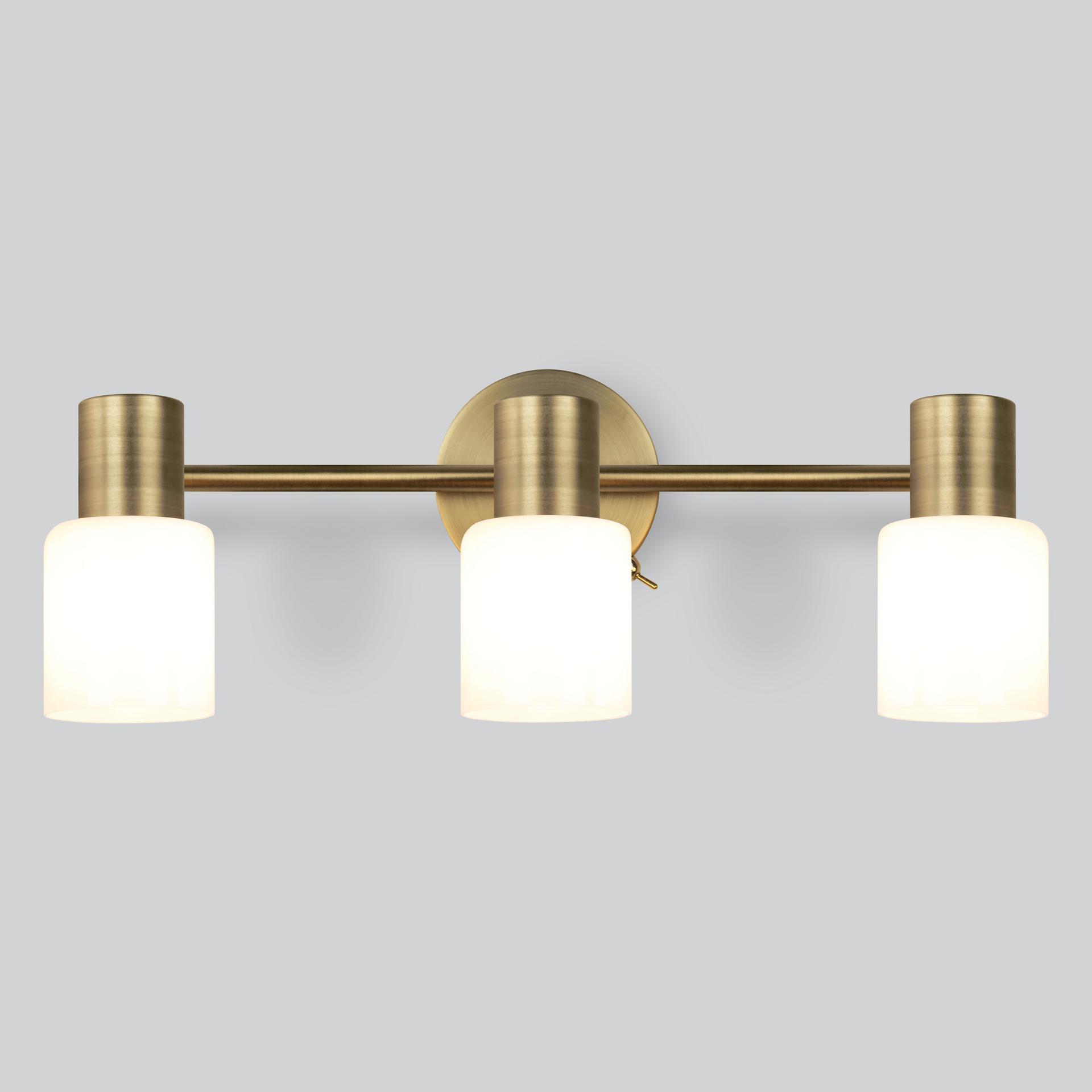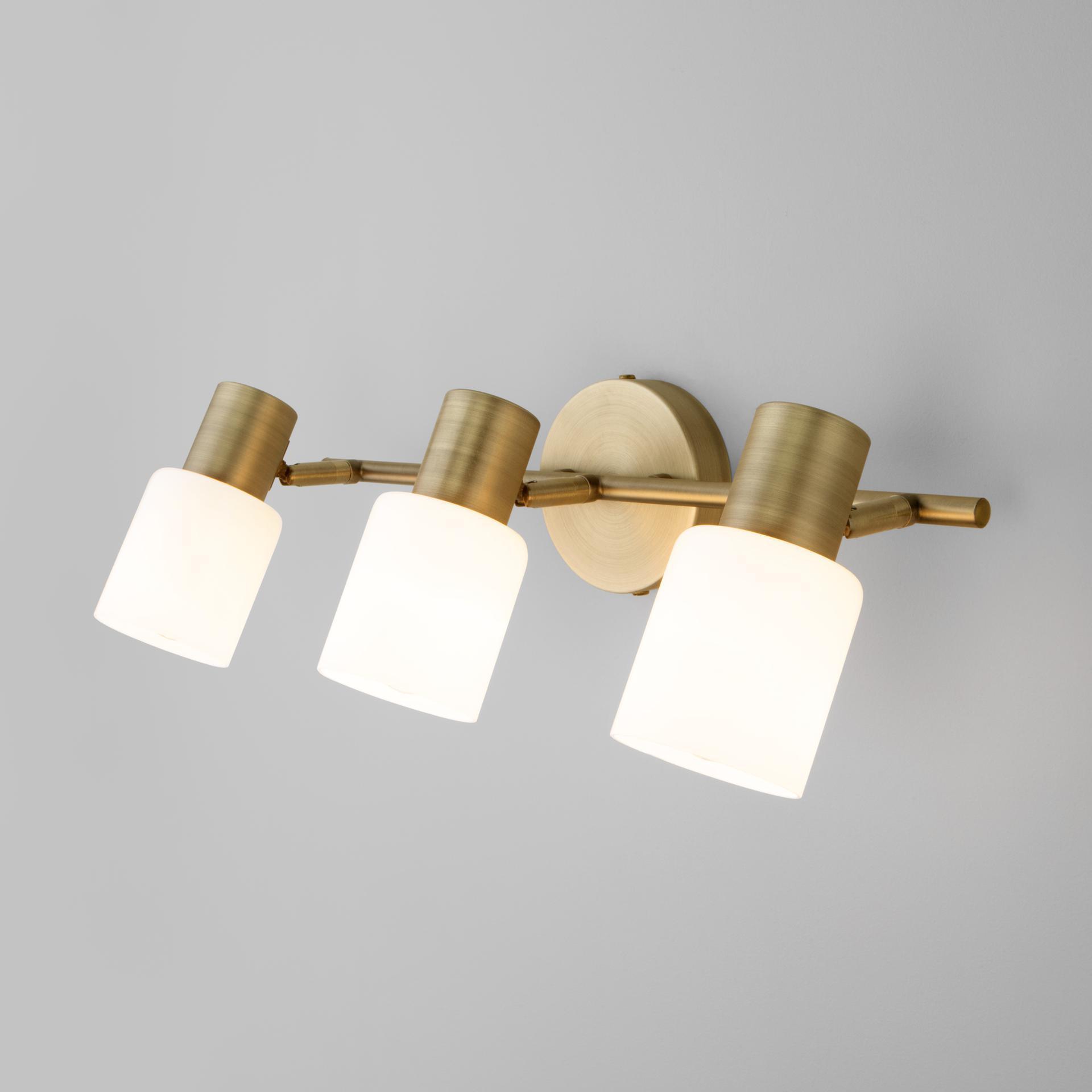 Настенный светильник с поворотными плафонами 20089/3 бронза создаст качественное дополнительное освещение и станет эффектным дополнением к основному источнику света. Благодаря белому стеклянному плафону, бра создает мягкое равномерное свечение, подходящее для комфортного чтения книг в вечернее время. В качестве источника света используются сменные лампы типа "Свеча" или "Шар" с цоколем Е27. Патрон рассчитан на максимальную мощность ламп накаливания 40 Вт. Корпус светильника выполнен из высококачественного и прочного металла с надежным покрытием. Бра легко устанавливается при помощи крепежной планки, которая обеспечивает надежную фиксацию светильника на стене. В интернет-магазине Минимир вы можете купить бра с доставкой по Москве, Санкт-Петербургу и России.