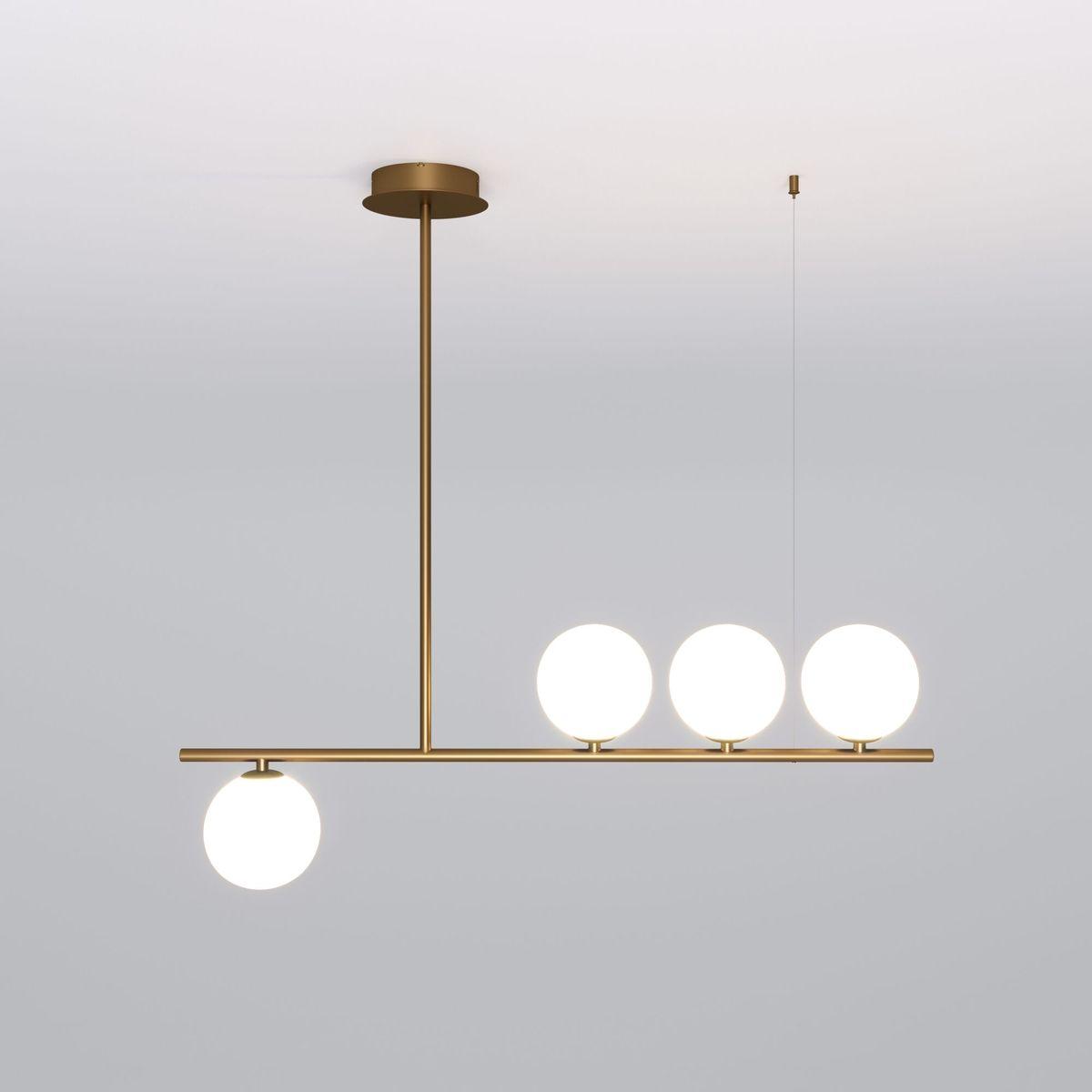 Уникальная модель 70136/4 латунь от российской компании Eurosvet относится к коллекции Fredo и отлично подойдет для установки на потолок спальни, оформленной в современном стиле. Подвесная люстра Eurosvet Fredo 70136/4 латунь с плафонами в виде шаров осветит помещение площадью 5 кв. м. Производитель Eurosvet рекомендует использовать для устройства светодиодные лампы с цоколем G9 и мощностью 7 W. Прибор произведен с использованием материалов: стекло и металл и может использоваться для натяжного потолка. Основным цветом товара является белый и латунный. Подвесная люстра 70136/4 латунь продается по цене 12500 руб. Торопитесь сделать заказ в интернет-магазине SvetONe.