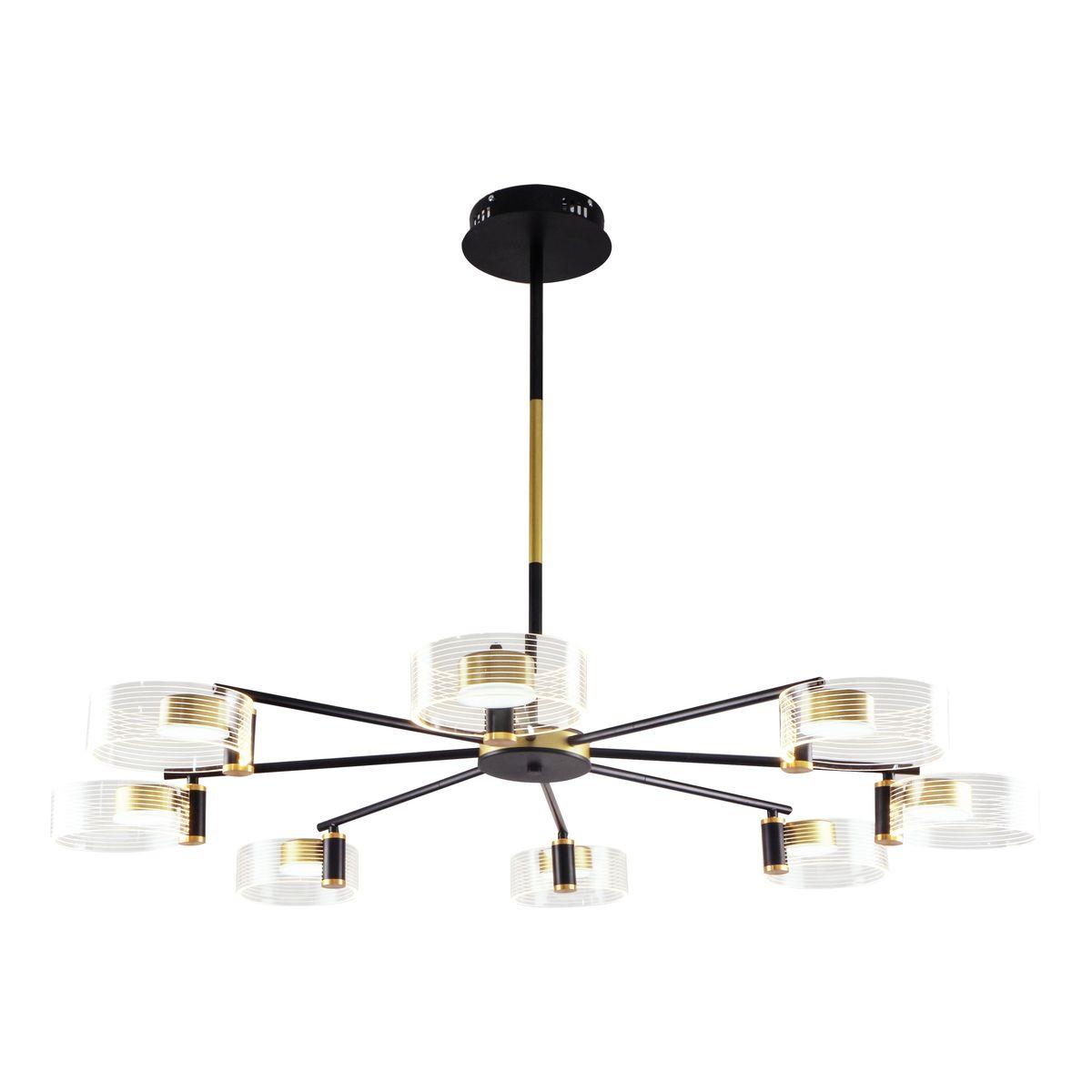 Потрясающая модель 10226/8LED от великобританской компании Escada относится к коллекции Cloud и отлично подойдет для установки на потолок в гостиной, оформленной в дизайнерском стиле. Подвесная светодиодная люстра Escada Cloud 10226/8LED с цилиндрическими плафонами осветит помещение площадью 19 кв. м. холодным светом. Осветительный элемент встроен в конструкцию и не требует приобретения дополнительных лампочек. Прибор произведен с использованием материалов: пластик, металл и акрил и может использоваться для натяжного потолка. В комплект поставки входит пульт дистанционного управления. Основным цветом товара является золотой и черный. Подвесная светодиодная люстра 10226/8LED с диммером продается по цене 24800 руб. Торопитесь сделать заказ в интернет-магазине SvetONe.