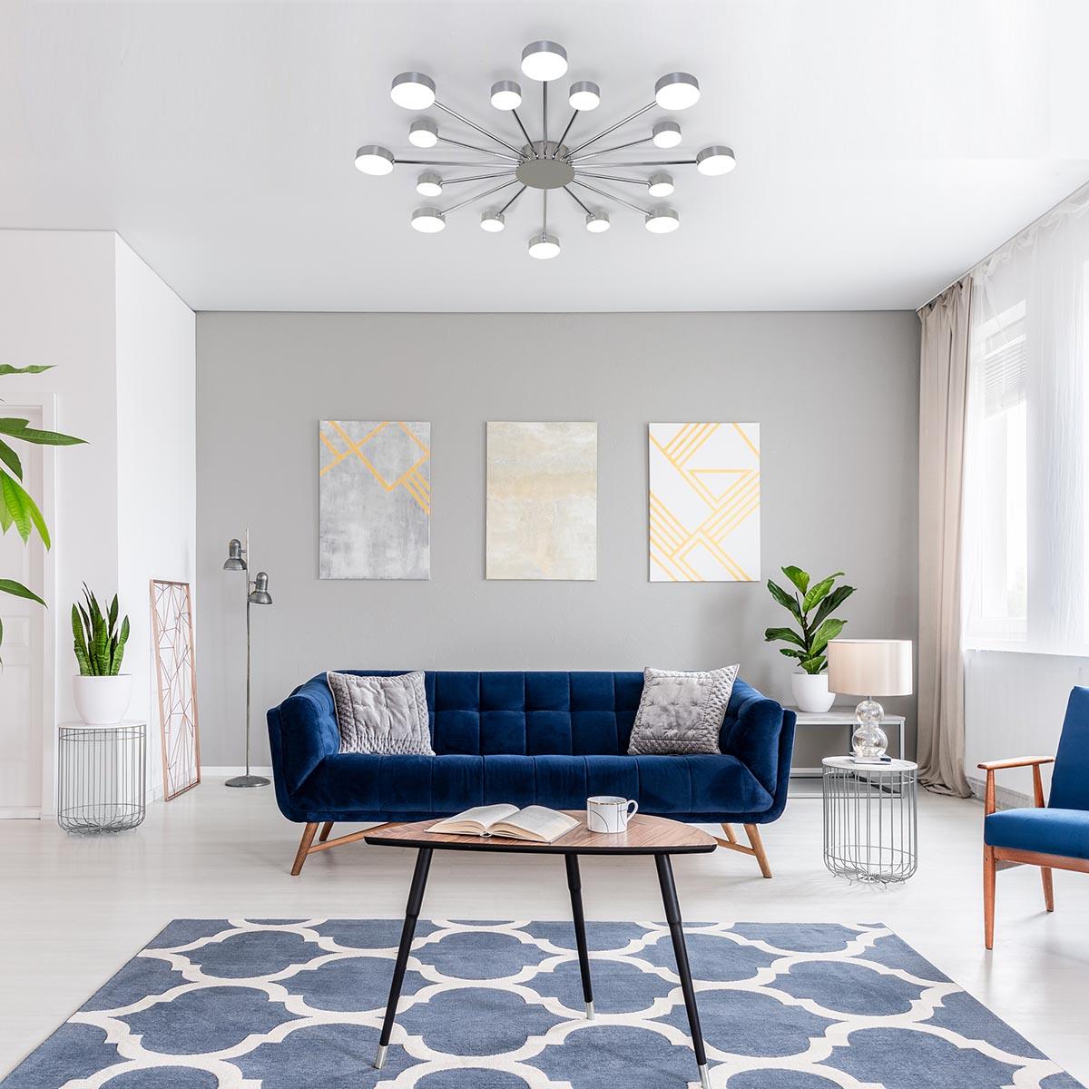 Невероятная модель 90242/16 хром от российской компании Eurosvet относится к коллекции Nitrino и отлично подойдет для установки на низкий потолок в гостиной, оформленной в стиле хай-тек. Осветительный элемент встроен в конструкцию и не требует приобретения дополнительных лампочек. Прибор произведен с использованием материалов: пластик и металл и может использоваться для натяжного потолка. В комплект поставки входит пульт дистанционного управления. Основным цветом товара является хромовый и белый. Потолочная светодиодная люстра 90242/16 хром продается по цене 37300 руб. Торопитесь сделать заказ в интернет-магазине SvetONe.