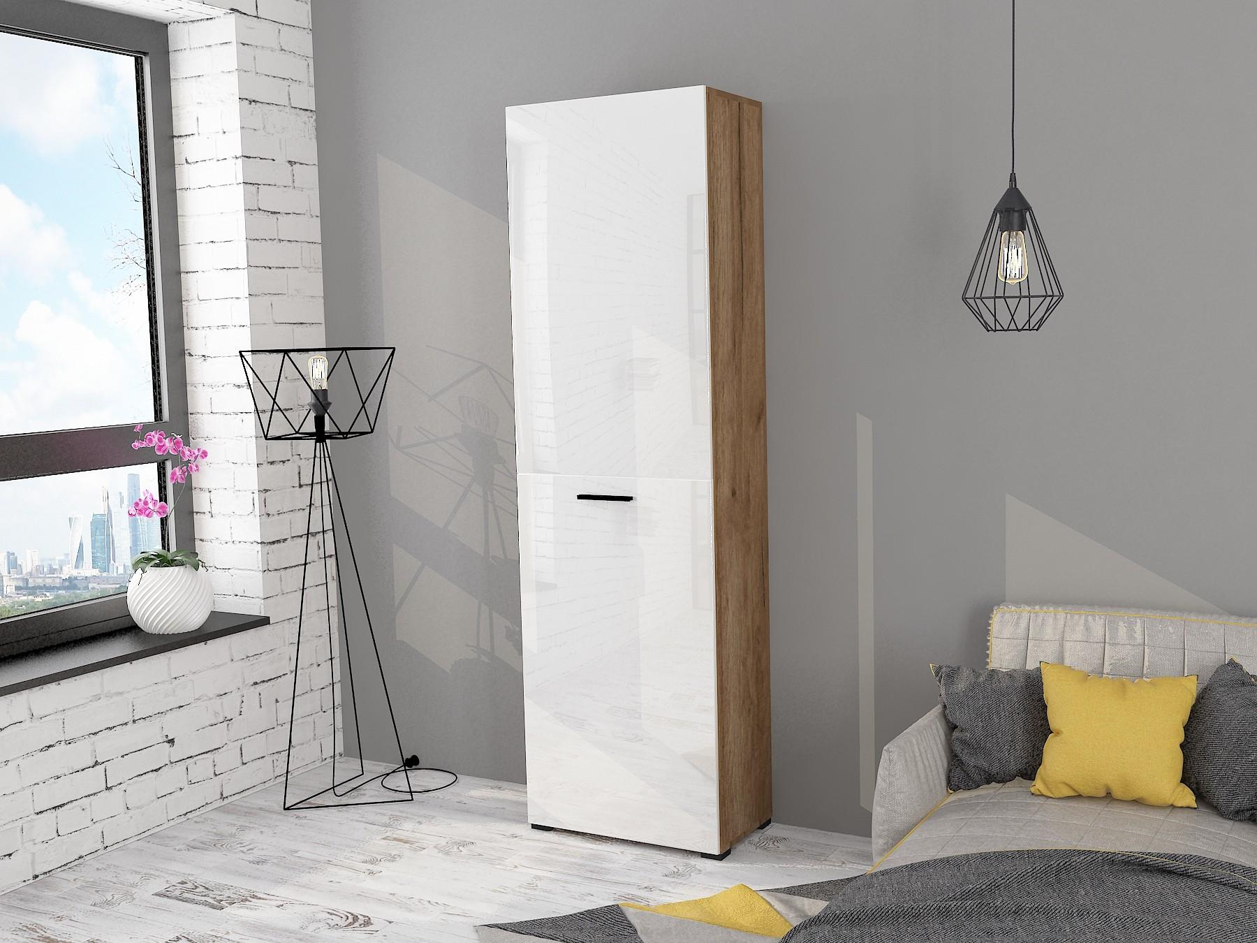 - Скандинавские декоры – ЛДСП Дуб Крафт и МДФ Белый глянец, мебельная ручка черного цвета.