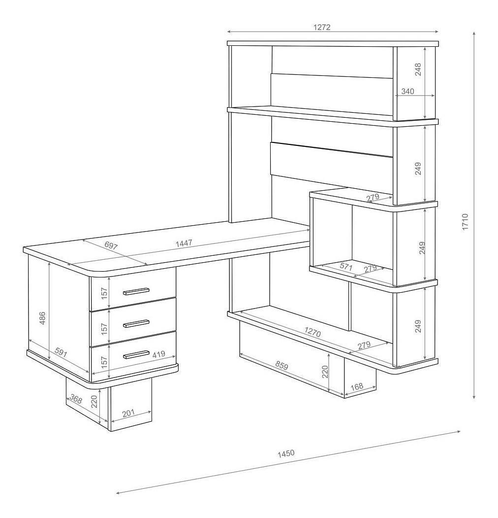 Компоненты, входящие в комплект стеллаж:5 полок;тумбочка:3 ящика