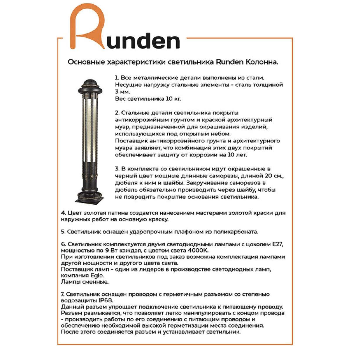 Уличный светильник Runden Колонна V10111